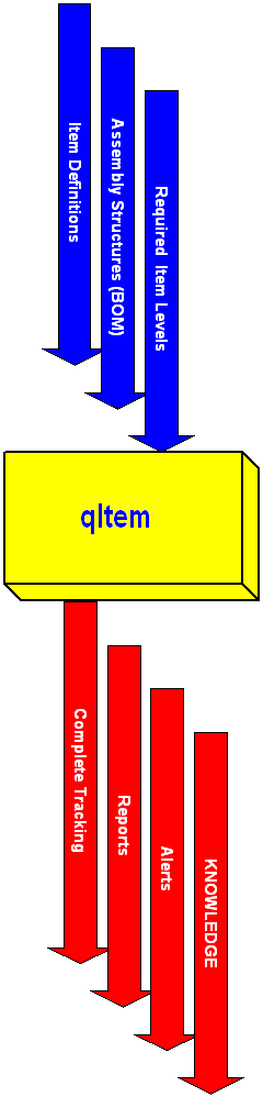 qItem™ does not stop there. In a second it can analyze what you have and have not, and inform what can be build, sold, or assembled now, in what quantity, and tell you if you need to make more. Not a full blown MRP, but damn very close, with a room for YOU to make well informed final decisions. Here are some more features: